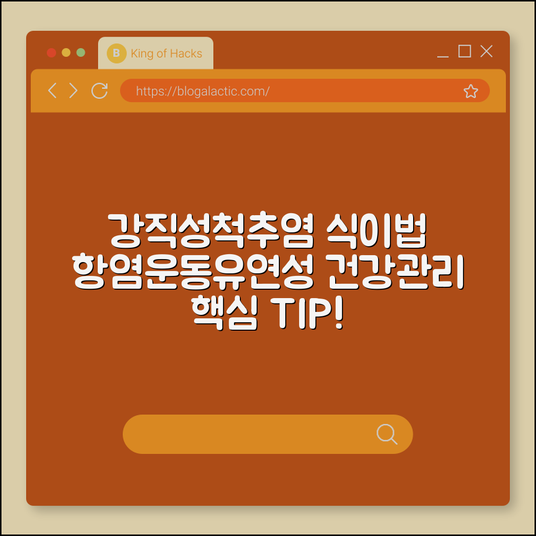 강직성척추염으로 인해 일상 속 작은 움직임조차 불편하게 느껴지시나요? 많은 분들이 통증 완화와 유연성 회복을 위해 어떤 식이요법과 운동이 좋은지 고민하고 있습니다. 이 글에서는 항염 효과가 뛰어난 식단과 함께 강직성척추염 환자에게 꼭 맞는 운동법, 그리고 유연성을 높이는 실질적인 방법들을 소개해 드릴게요. 끝까지 읽으면 스스로 건강 관리를 시작할 수 있는 자신감이 생길 거예요!