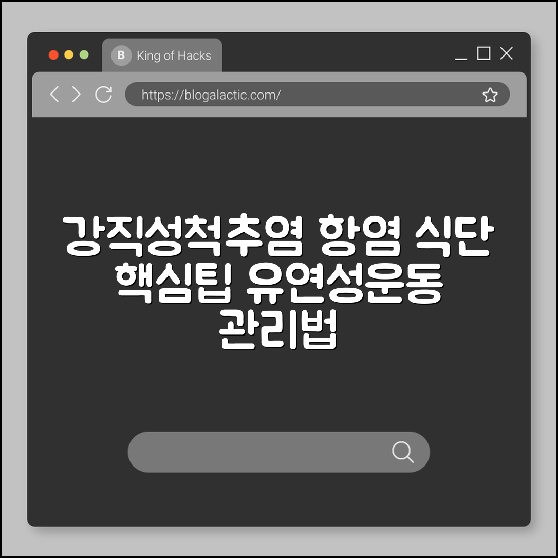 강직성척추염으로 인해 매일 아침 뻣뻣한 몸을 경험하고 계신가요? 염증과 통증이 생활의 큰 부담이 되면서, 어떤 음식을 먹어야 증상을 완화할 수 있을지 고민하는 분들이 많습니다. 강직성척추염 환자에게 맞는 항염 식단과 꾸준한 운동이 유연성을 높이고 삶의 질을 크게 개선할 수 있다는 사실, 알고 계셨나요? 이 글을 통해 강직성척추염 환자 식단에 꼭 필요한 정보와 실천 방법을 쉽고 친근하게 알려드립니다.