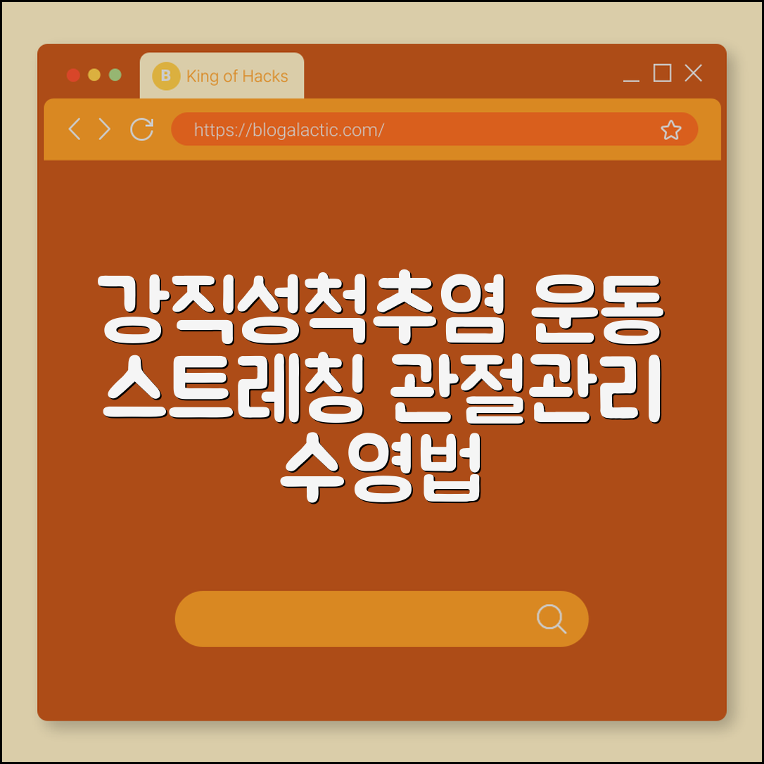 강직성척추염으로 인해 뻣뻣한 허리와 관절 때문에 일상생활이 힘들진 않으신가요? 꾸준한 스트레칭과 적절한 관절 관리, 그리고 수영 같은 운동이 증상 완화에 큰 도움을 줄 수 있다는 사실, 알고 계셨나요? 이 글에서는 강직성척추염 환자분들을 위한 운동 가이드(스트레칭, 관절관리, 수영)를 쉽고 자세하게 알려드릴게요. 끝까지 읽으시면 몸의 유연성을 높이고 통증을 줄이는 실질적인 방법들을 만나보실 수 있습니다.