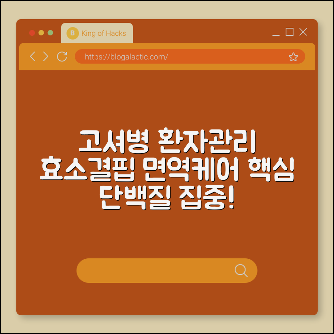 | 1. 단백질 섭취 조절 | 고셔병은 글루코세레브로시다제 효소 결핍으로 지방 축적 위험 증가. 적절한 단백질 섭취는 근육 유지와 면역 강화에 필수적입니다. |