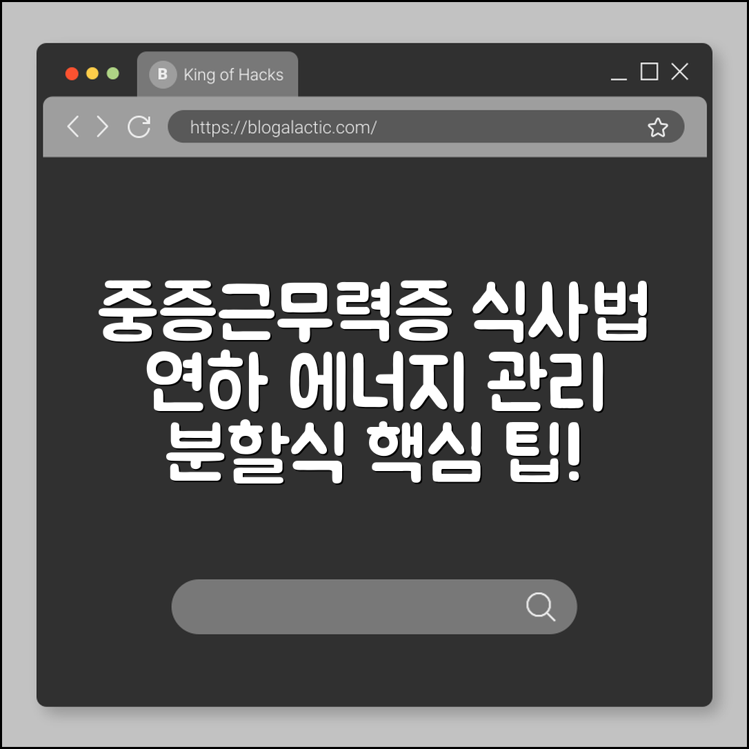중증근무력증 환자는 근육 피로가 쉽게 오므로 효율적인 에너지 공급이 필수적입니다. 적절한 분할식과 균형 잡힌 영양소 공급이 중요하며, 특히 혈당 조절이 잘 되는 복합 탄수화물과 신속한 에너지원이 되는 단백질을 함께 섭취하는 것이 좋습니다.
