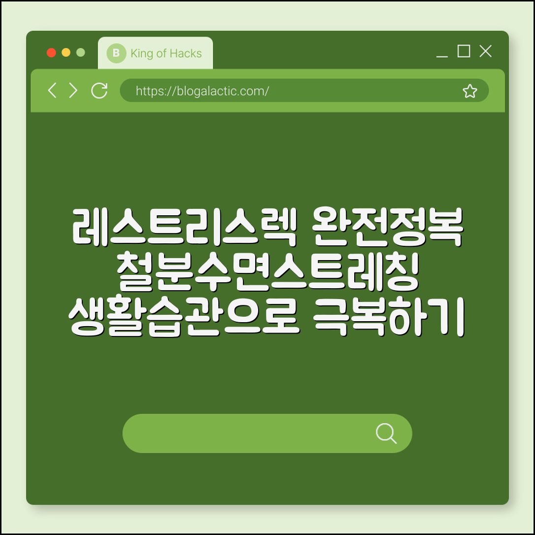 철분 섭취와 수면 환경 개선, 꾸준한 스트레칭이 레스트리스렉 증후군 증상 완화에 꼭 필요합니다. 당신은 오늘 어떤 작은 변화를 시작할 준비가 되셨나요?