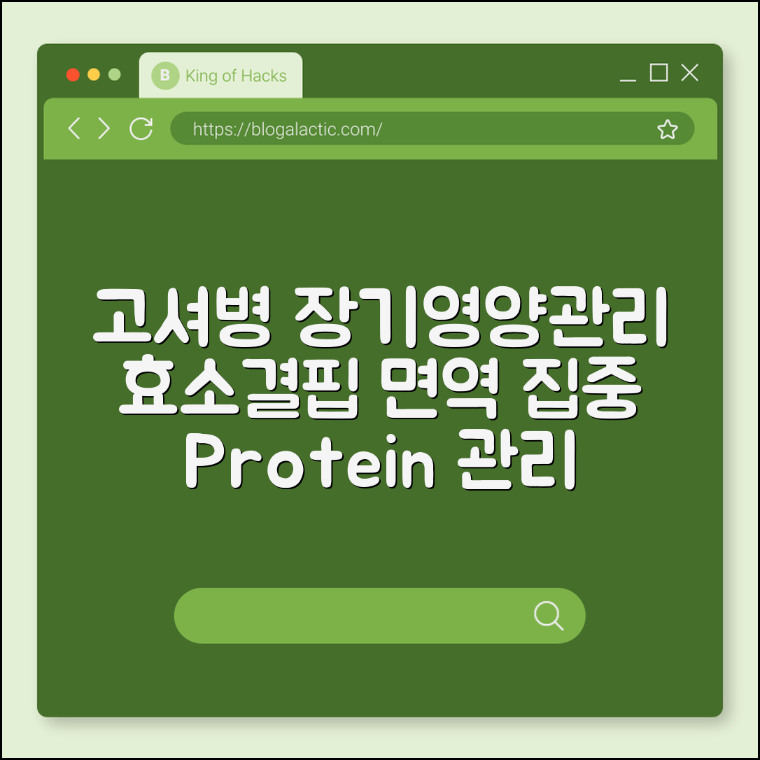 고셔병 환자의 장기영양관리는 효소결핍으로 인한 대사 장애와 면역력 저하, 단백질 대사 이상을 고려해야 합니다. 단백질 섭취는 조직 회복과 면역 기능 유지에 필수이며, 항산화 영양소를 통해 염증 완화도 도움됩니다.