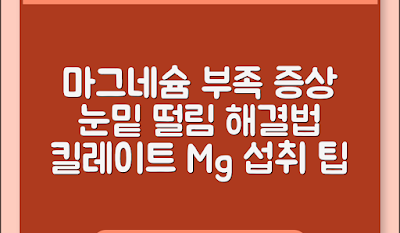 마그네슘 부족 증상 및 눈밑 떨림 해결 영양제 섭취법에서, 근육 이완과 신경 안정에 효과적인 세 가지 영양제를 소개합니다. 특히 킬레이트 마그네슘은 흡수율이 뛰어나 신경과 근육 건강에 도움을 줍니다.